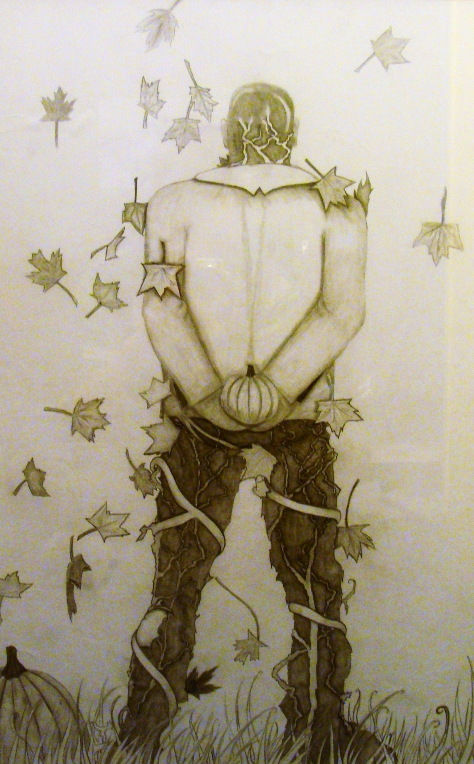 Drawing using graphite, chalk pastels, charcoal, and a permanent marker.