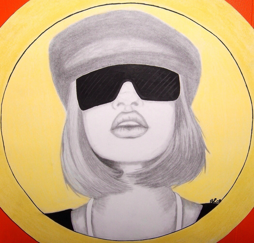 Drawing using graphite pencil, chalk pastel, permanent marker, and blending tools.