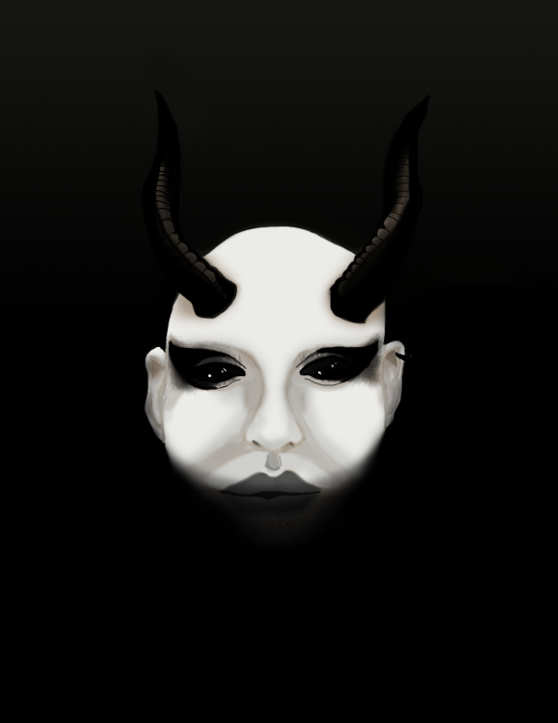 Drawing using graphite pencil, charcoal, permanent marker, and blending sticks.